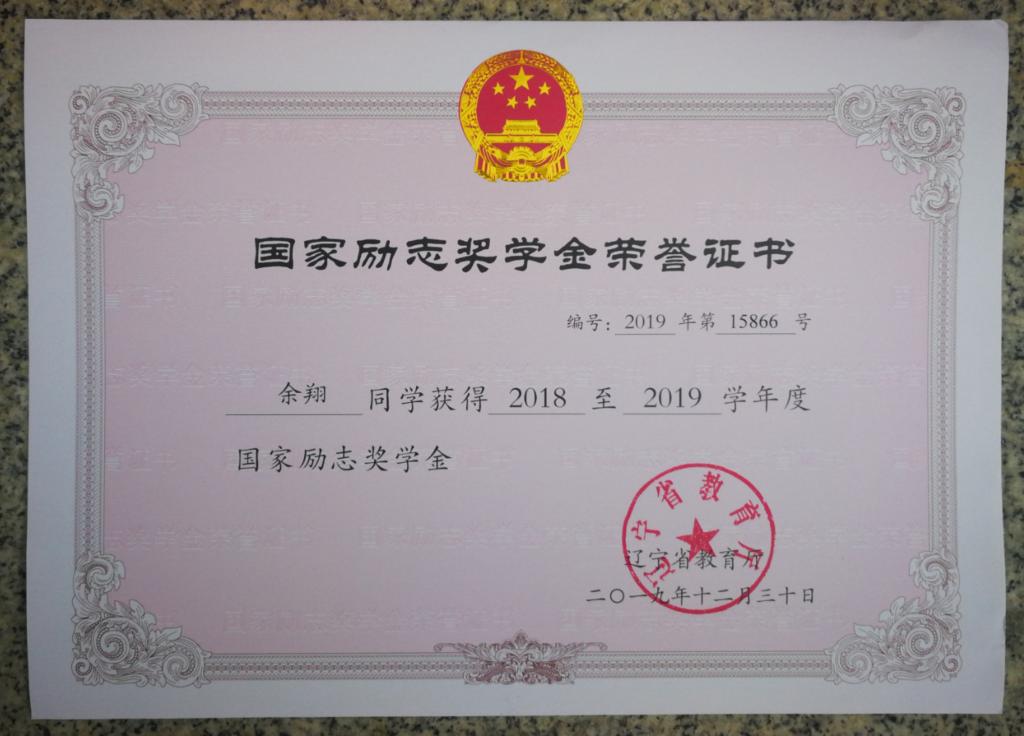 2018—2019学年度国家励志奖学金