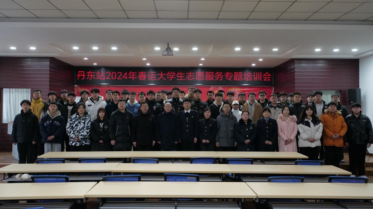 丹东站团委书记刘骐玮代表丹东站对学校与车站近几年联合开展志愿服务活动表示感谢,同时希望今后学校和车站密切联系,有更深层次的合作,并进一步强调了安全的重要性。客营科工程师刘仁慧详细地为大家讲解了志愿服务过程中可能会遇到的问题及困难,并为同学提供处理办法,随后刘工程师针对铁路12306客户端的使用进行了系统的培训,以便有效处理旅客购票、改签、退票等相关突发性问题。