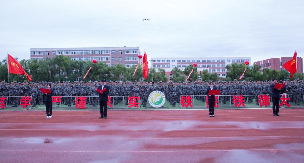 诗朗诵《梦想从辽铁起航》号召新一代辽铁青年要为国家轨道交通事业发展不懈努力,全体新同学齐声回应“时刻准备着、时刻准备着、时刻准备着!”2024级新生开学典礼暨军训总结大会圆满落下了帷幕。