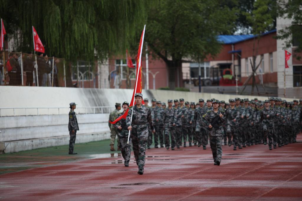 军训汇报表演结束,分列式正式开始。国旗护卫方队和34支新生方队依次通过主席台。响亮的口号、整齐的步伐,展现了新生军训工作取得的良好成果,赢得了在场部队首长和学校领导的阵阵掌声。