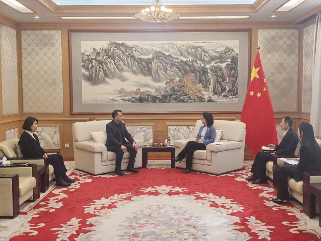 仪式前,赵明率代表团中国驻蒙古国大使沈敏娟进行亲切会谈,并详细介绍了辽宁省“墨子工坊”项目品牌及学校中铁路“墨子工坊”项目建设情况。沈敏娟详细了解了铁路“墨子工坊”项目特色、项目现况、项目定位及预期效果,并表示此项目建成对促进中蒙两国教育文化交流具有重要意义同时,对项目今后可持续发展给出了意见建议,希望“墨子工坊”为助力“走出去”企业发展发挥积极作用。